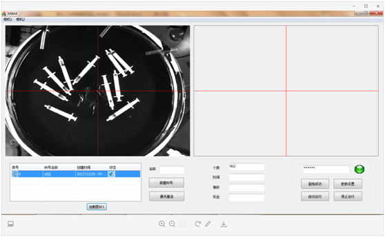 1, 系統(tǒng)采用大視野粗抓針管再配合小視野精定位,同時(shí)判斷針管的正反