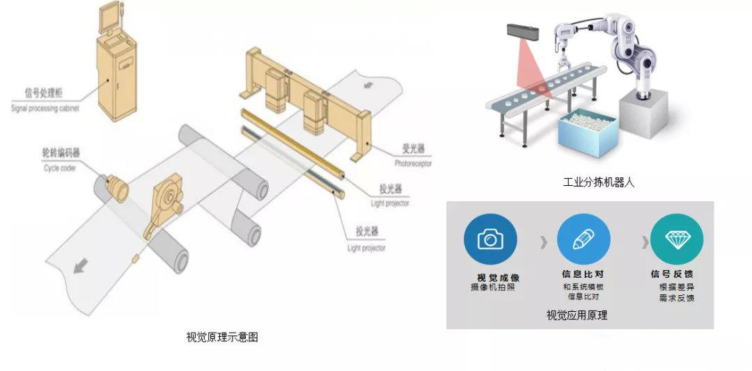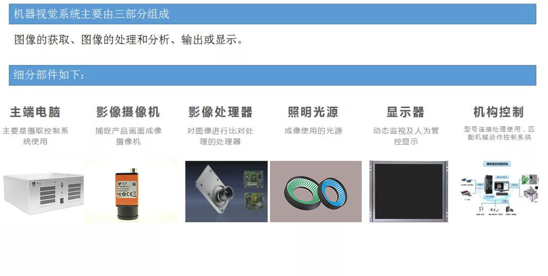 機(jī)器視覺是配備有傳感視覺儀器(如自動(dòng)對(duì)焦相機(jī)或傳感器)的檢測(cè)機(jī)器,主要研究計(jì)算機(jī)來模擬認(rèn)的視覺功能從客觀事物圖像中提取信息,進(jìn)行處理并加以理解,最終用于實(shí)際檢測(cè)(監(jiān)測(cè)),測(cè)量、定位和控制。其中光學(xué)檢測(cè)儀器占有比重非常高,可用于檢測(cè)出各種產(chǎn)品的缺陷,或者用于判斷并選擇出物體,或者用來測(cè)量尺寸等,應(yīng)用在自動(dòng)化生產(chǎn)線上對(duì)物料進(jìn)行校準(zhǔn)與定位。是計(jì)算機(jī)視覺中最具有產(chǎn)業(yè)化的部分,主要大量應(yīng)用于工廠自動(dòng)化檢測(cè)及機(jī)器人產(chǎn)業(yè)等。