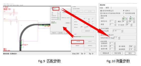 Step3:調(diào)整高級(jí)參數(shù)。點(diǎn)擊“高級(jí)參數(shù)”,進(jìn)入高級(jí)參數(shù)界面,調(diào)整參數(shù)如下圖9與圖10??筛鶕?jù)實(shí)際情況修改“分?jǐn)?shù)”、“角度容差”、“濾波次數(shù)”、“有效點(diǎn)比例”、“直線夾角誤差”等參數(shù)。