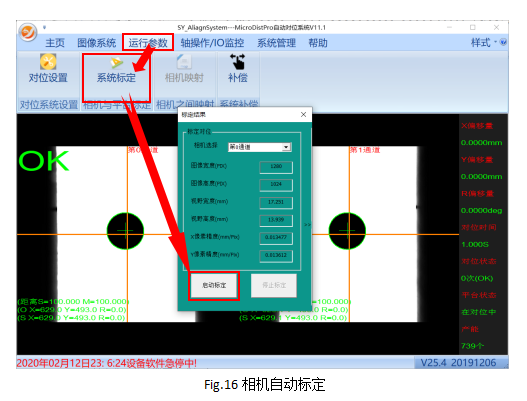 系統(tǒng)全體停止的狀態(tài)下點(diǎn)擊“運(yùn)行參數(shù)”->“系統(tǒng)標(biāo)定”,彈出標(biāo)定界面后,點(diǎn)擊“啟動(dòng)標(biāo)定”即可開(kāi)始標(biāo)定,系統(tǒng)提示標(biāo)定完成即完成標(biāo)定。