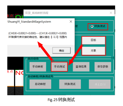 6) 勾選轉(zhuǎn)換測(cè)試,再做第三次交接,步驟同上,抓點(diǎn)OK后點(diǎn)擊手動(dòng)測(cè)試。CH數(shù)據(jù)需要在【-3~3】范圍內(nèi)才算映射合格。代表產(chǎn)品交接穩(wěn)定,否則需要檢查抓點(diǎn)問(wèn)題和機(jī)構(gòu)交接的穩(wěn)定性問(wèn)題。