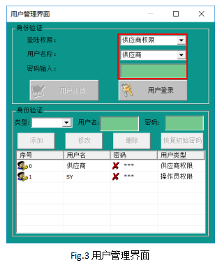 ② 用戶管理界面,輸入供應(yīng)商權(quán)限密碼:“310525”,點(diǎn)擊“用戶登陸”,進(jìn)入軟件管理權(quán)。