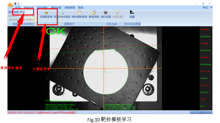 ? Step1:如圖10所示,通過(guò)“通道名稱”處選擇我們要進(jìn)行模板學(xué)習(xí)的通道:“靶標(biāo)”,然后點(diǎn)擊“主模板登錄”進(jìn)行圖像的模板學(xué)習(xí)。