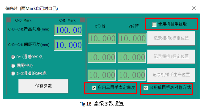 使用機(jī)械手抓?。盒D(zhuǎn)軸用來(lái)對(duì)位OK之后吸物料就需要選擇機(jī)械手抓取,如果旋轉(zhuǎn)軸用來(lái)承載物料完成對(duì)位就選擇不使用機(jī)械手抓取。偏光片就選擇不打勾,玻璃就需要選擇打勾