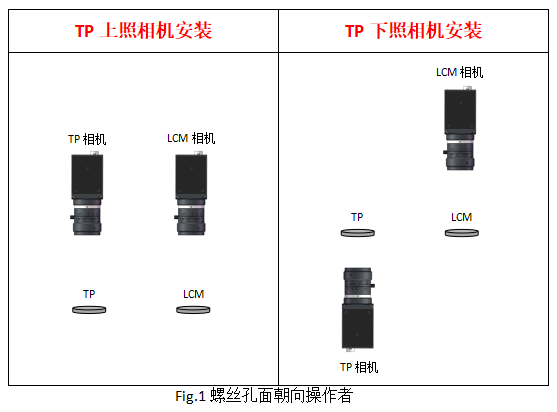 相機(jī)的安裝方向:以操作者站立調(diào)試的位置為基準(zhǔn)(一般就是顯示器的位置),相機(jī)的螺絲孔面朝向操作者,標(biāo)簽面(即正面)遠(yuǎn)離操作者。這樣才能保證實(shí)際圖像和顯示器圖像保持一致性,方便調(diào)試。
