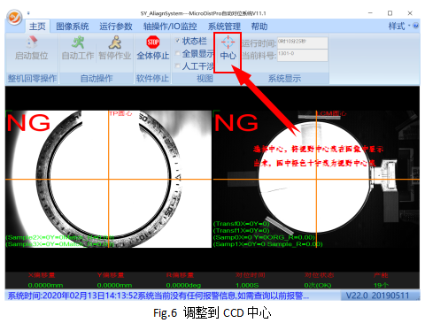 軟件上點(diǎn)擊中心,在圖像中可以看到橙色的十字線,這個(gè)為視野中心,在產(chǎn)品上料過程中,我們需要將產(chǎn)品放置到橙色十字交點(diǎn)即視野中心位置。