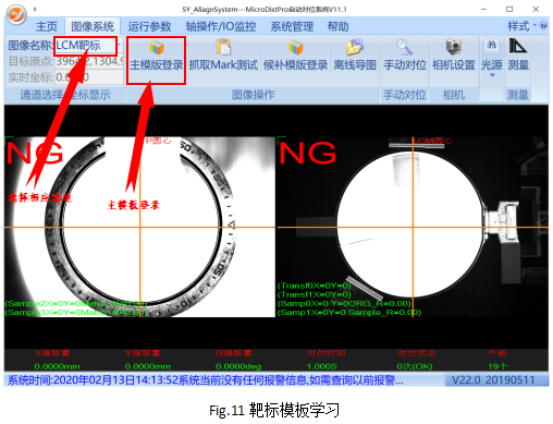 ? Step1:如圖11所示,通過“通道名稱”處選擇我們要進(jìn)行模板學(xué)習(xí)的通道:“LCM靶標(biāo)”,然后點(diǎn)擊“主模板登錄”進(jìn)行圖像的模板學(xué)習(xí)。