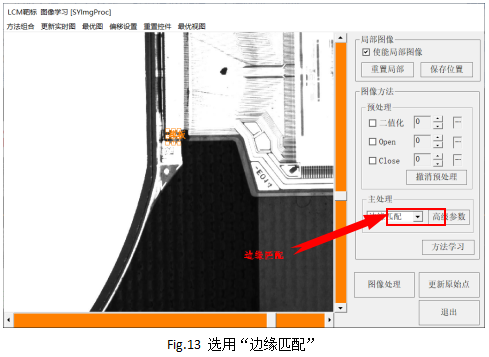 ? Step3:如下圖13所示,下拉重新選擇“邊緣匹配”,黃色的模板框工具則會(huì)顯示出來,通過拖拽調(diào)整使模板框位置和大小合適,再點(diǎn)擊“方法學(xué)習(xí)”,則學(xué)習(xí)記錄當(dāng)前的模板。