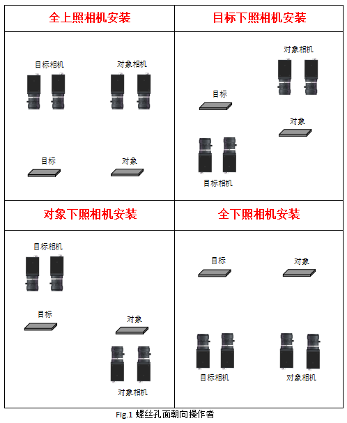 相機的安裝方向:以操作者站立調(diào)試的位置為基準(zhǔn)(一般就是顯示器的位置),相機的螺絲孔面朝向操作者,標(biāo)簽面(即正面)遠離操作者。這樣才能保證實際圖像和顯示器圖像保持一致性,方便調(diào)試。