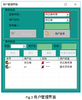 ② 用戶管理界面,輸入供應(yīng)商權(quán)限密碼:“310525”,點擊“用戶登陸”,進入軟件管理權(quán)。