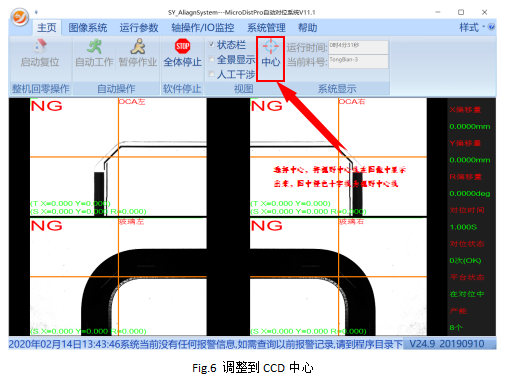 軟件上點擊中心,在圖像中可以看到橙色的十字線,這個為視野中心,在產(chǎn)品上料過程中,我們需要將產(chǎn)品放置到橙色十字交點即視野中心位置。