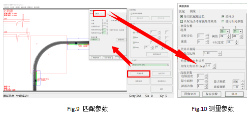 ? Step3:調(diào)整高級參數(shù)。點擊“高級參數(shù)”,進入高級參數(shù)界面,調(diào)整參數(shù)如下圖9與圖10??筛鶕?jù)實際情況修改“分?jǐn)?shù)”、“角度容差”、“濾波次數(shù)”、“有效點比例”、“直線夾角誤差”等參數(shù)。