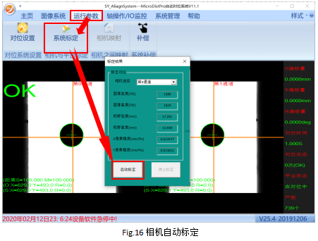 系統(tǒng)全體停止的狀態(tài)下點擊“運行參數(shù)”->“系統(tǒng)標(biāo)定”,彈出標(biāo)定界面后,點擊“啟動標(biāo)定”即可開始標(biāo)定,系統(tǒng)提示標(biāo)定完成即完成標(biāo)定。