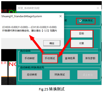 6) 勾選轉(zhuǎn)換測試,再做第三次交接,步驟同上,抓點OK后點擊手動測試。CH數(shù)據(jù)需要在【-3~3】范圍內(nèi)才算映射合格。代表產(chǎn)品交接穩(wěn)定,否則需要檢查抓點問題和機構(gòu)交接的穩(wěn)定性問題。