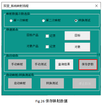系統(tǒng)全體停止的狀態(tài)下,打開相機映射界面,放置好TP,點擊“啟動映射”,抓點OK完成第一次映射后,然后再重復(fù)搬運一次,做第二次映射。再點擊“轉(zhuǎn)換測試”進行一次轉(zhuǎn)換測試。