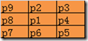 我們對一副二值圖像進行骨架提取,就是刪除不需要的輪廓點,只保留其骨架點。假設一個像素點,我們定義該點為p1,則它的八鄰域點p2->p9位置如下圖所示,該算法考慮p1點鄰域的實際情況,以便決定是否刪除p1點。假設我們處理的為二值圖像,背景為黑色,值為0,要細化的前景物體像素值為1。