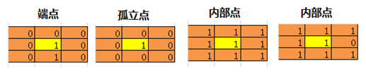 5.循環(huán)所有的前景像素點,對符合如下條件的像素點標記為刪除: