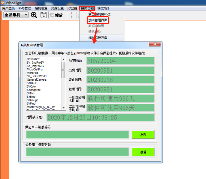第二次及后續(xù)解密時(shí)間操作方法:提供加密狗ID與再次加密的時(shí)間日期給供應(yīng)商,然后會(huì)生成一串字符串激活碼。