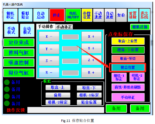 將機(jī)械手移動(dòng)到貼合的位置,將此位置保存為貼合位置。