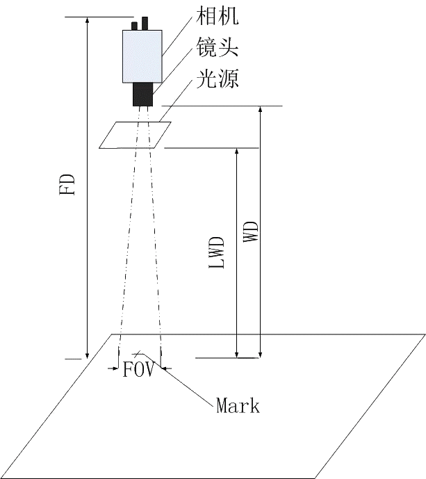 2、 WD(WorkDistance)一般概念為工作距離或者物距,即從鏡頭的下端面到檢測工件表面的距離,這個部分需要客戶提供,因為有些客戶的機臺已經(jīng)做好,安裝的空間有限,需要客戶給出。