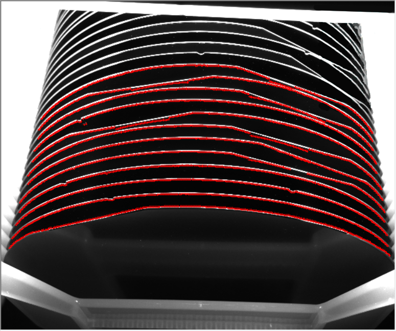 由于需要斜著拍照,倒是相機(jī)拍攝出來的圖片有嚴(yán)重的透視畸變,同時打光要求難度高, 光源使用組合條形光源,多角度打光