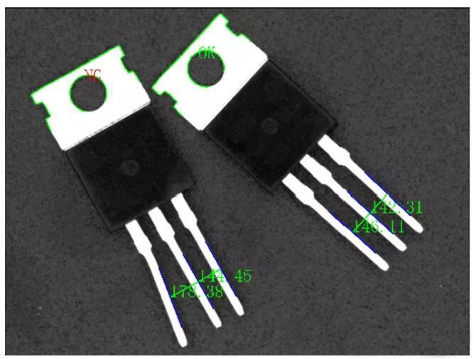 3.引腳缺陷檢測(cè),如引腳缺失、引腳破損、引腳間距、引腳寬度、引腳彎曲度、引腳跨距、引腳長(zhǎng)度差異、引腳站立高、引腳共面度、引腳傾斜等。