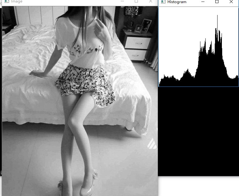 ? 在上面中封裝了求灰度直方圖的類,這里直接應(yīng)用該方法得到圖像的灰度直方圖;