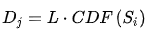 是源圖像灰度為i的累積分布,L是圖像中最大灰度級(灰度圖為255)