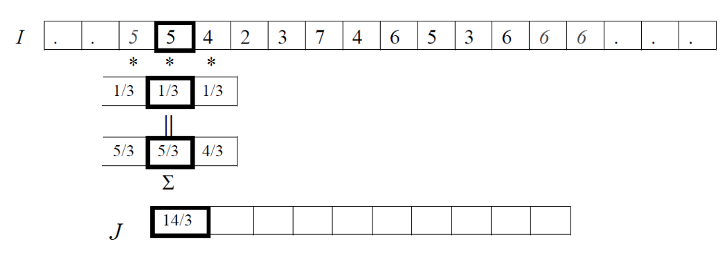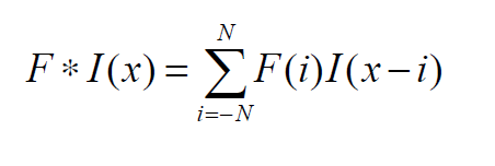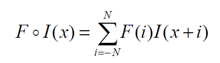 如下公式給出了使用濾波器 F 對(duì)輸入數(shù)據(jù) I 進(jìn)行一維相關(guān)運(yùn)算的數(shù)學(xué)公式。我們假設(shè) F 有奇數(shù)個(gè)元素,所以當(dāng)它移動(dòng)時(shí),它的中心就在圖像 I 的一個(gè)元素上。所以我們說 F 有2N+1個(gè)元素,這些元素從-N索引到N,所以F的中心元素是F(0)。