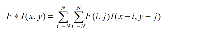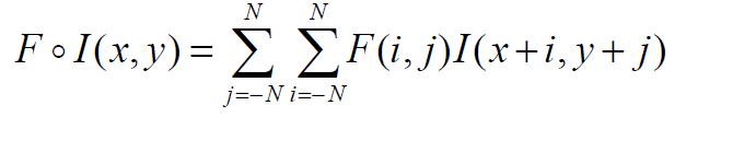 類似地,我們可以將這個(gè)概念擴(kuò)展到二維,如下?;舅枷胧且粯拥模藞D像和濾波器現(xiàn)在是二維的,可以假設(shè)濾波器有奇數(shù)個(gè)元素,所以它用(2N+1)x(2N+1)矩陣表示。