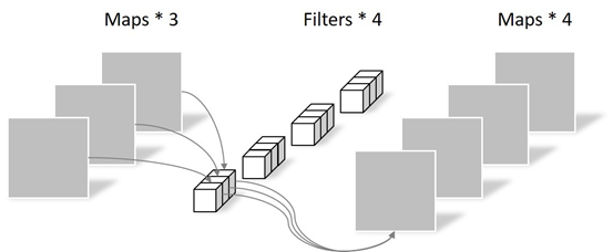 Depthwise Convolution完成后的Feature map數(shù)量與輸入層的通道數(shù)相同,無法擴(kuò)展Feature map。而且這種運(yùn)算對(duì)輸入層的每個(gè)通道獨(dú)立進(jìn)行卷積運(yùn)算,沒有有效的利用不同通道在相同空間位置上的feature信息。因此需要Pointwise Convolution來將這些Feature map進(jìn)行組合生成新的Feature map。