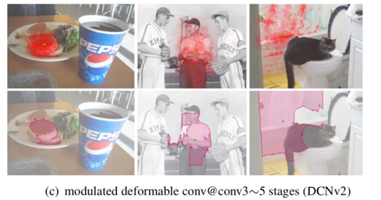 總的來說,DCNv1中引入的偏移量是要尋找有效信息的區(qū)域位置,DCN v2中引入權(quán)重系數(shù)是要給找到的這個(gè)位置賦予權(quán)重,這兩方面保證了有效信息的準(zhǔn)確提取。