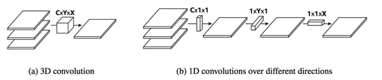 SpatiallySeparableConvolutions將卷積分成兩部分,最常見的是把3x3的kernel分解成3x1和1x3的kernel。例如: