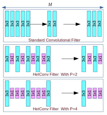 HetConv 是在2019年CVPR提出的一種新的高效卷積方式,它在CIFAR10、ImageNet等數(shù)據(jù)集超過了標(biāo)準(zhǔn)卷積以及DW+PW的高效卷積組合形式,取得了更高的分類性能。HetConv 主要側(cè)重于設(shè)計(jì)新的卷積核,傳統(tǒng)的卷積和按文中說法稱為同構(gòu)卷積(homogeneousconvolution),即該過濾器包含的所有卷積核都是同樣大小(比如在 3 × 3 × 256CONV2D 過濾器中,所有 256 個(gè)核都是 3×3 大?。?,HetConv 是異構(gòu)卷積(heterogeneous convolution), 即過濾器包含不同大小的卷積核(比如在某個(gè) HetCOnv 過濾器中,256 核有的是 3×3 大小,其余的是 1×1 大小,由參數(shù)P控制 1×1 卷積核的數(shù)量)。