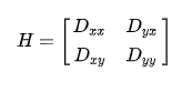 在邊緣梯度的方向上主曲率值比較大,而沿著邊緣方向則主曲率值較小。候選特征點(diǎn)的DoG函數(shù)D(x)的主曲率與