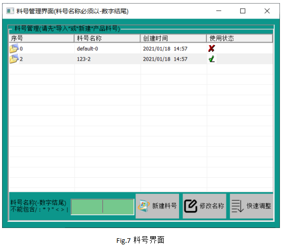 即為目前正在使用的料號。光標(biāo)在當(dāng)前料號時右鍵雙擊可刪除當(dāng)前料號,左鍵雙擊即導(dǎo)入當(dāng)前料號。