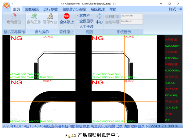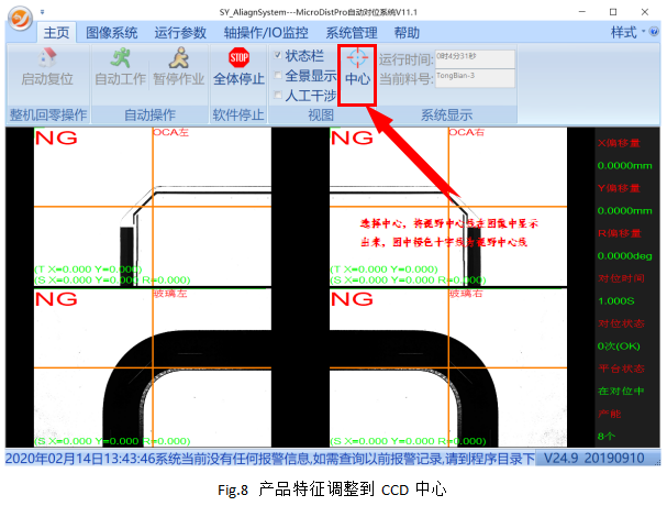 軟件上點擊中心,在圖像中可以看到橙色的十字線,這個為視野中心,在產(chǎn)品上料過程中,我們需要將產(chǎn)品放置到橙色十字交點即視野中心位置。