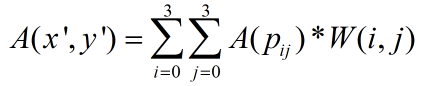浮點(diǎn)型坐標(biāo)點(diǎn)的插值為其周圍4*4整型坐標(biāo)點(diǎn)像素值的加權(quán)和: