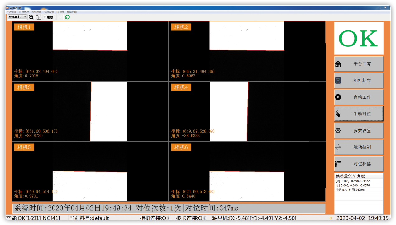 1.六相機方案利用兩個相機看長邊方向,更好的把控長邊方向的角度誤差,提供對位精度;