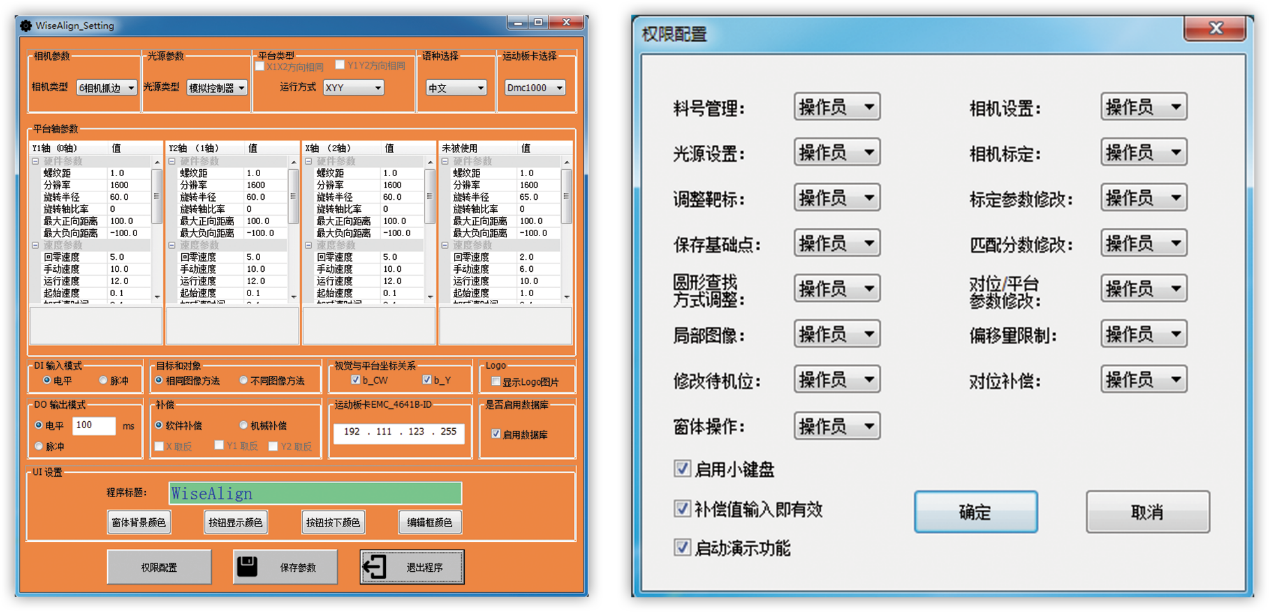 軟件分后臺配置軟件和運行軟件兩大部分。后臺軟件配置設備應用工藝,硬件資源,UI交互即可完成;運行軟件簡潔明了,易操作;只需幾分鐘即可完成一臺新應用的配置,快速進入調(diào)試階段;十幾分鐘完成設備視覺部分調(diào)試。