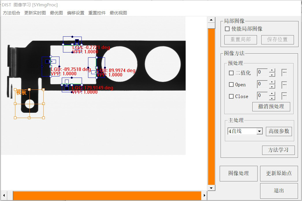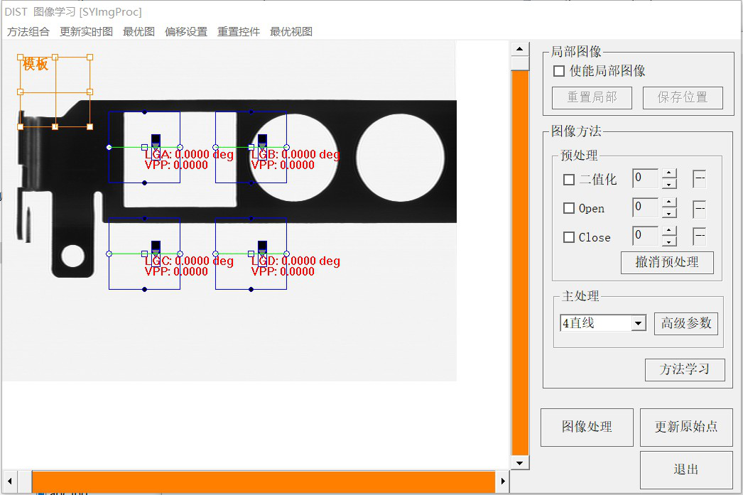 鼠標(biāo)改變 LGA、 LGB、LGC 及 LGD 模塊的角度和位置進(jìn)行直線擬合;特別地,鼠標(biāo)左鍵在模塊的中點(diǎn)雙擊可改變尋邊模式(黑到白 或 白到黑)