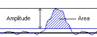 之間的差稱為 Amplitude;由 Threshold 及高于 Threshold 以上的變化率曲線圍成的稱為 Area。