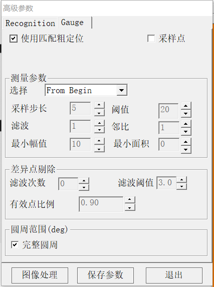 匹配作為粗定位使用,圓形擬合模塊根據(jù)粗定位自動(dòng)改變位置;對(duì)于目標(biāo)比較固定的情況,可不采用粗定位功能。