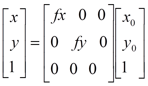 圖像的比例縮放變換是指給定的圖像在x軸方向按比例縮放fx倍,在y軸方向縮放fy倍,從而獲得一幅新的圖象。比例縮放前后兩點P0(x0,y0)、P(x,y)之間的關(guān)系用矩陣形式可以表現(xiàn)為:
