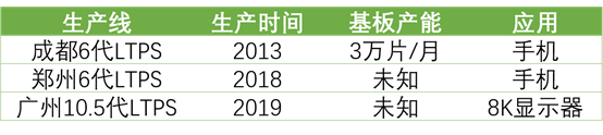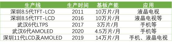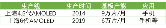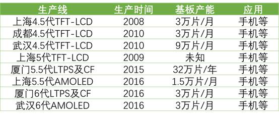 5代TFT-LCD、6代AMOLED、14萬片/月、車載顯示屏等