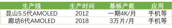 昆山第5.5代AMOLED量產(chǎn)線由維信諾自主設(shè)計,采用自主研發(fā)的OLED器件和LTPS(低溫多晶硅)技術(shù)快速整合。一期擁有4K/月的產(chǎn)能,年產(chǎn)值約20億元。