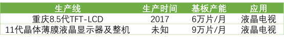 重慶8.5代TFT-LCD項目采用a-Si技術(shù),月產(chǎn)6萬片玻璃基板,預(yù)計2017年一季度試投產(chǎn),達(dá)產(chǎn)后年產(chǎn)值約110億元。