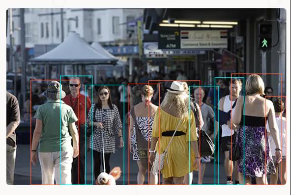 2.標(biāo)框標(biāo)注:機(jī)器視覺中的標(biāo)框標(biāo)注,很容易理解,就是框選要檢測的對象。如人臉識別,首先要先把人臉的位置確定下來。行人識別,如下圖。