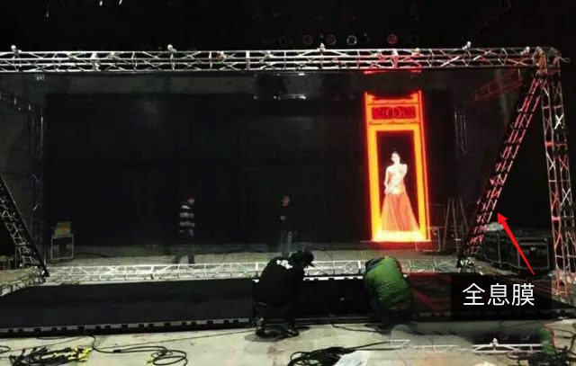 早在 19 世紀,佩珀爾幻象已在舞臺演出中廣泛應(yīng)用,現(xiàn)代技術(shù)下的佩珀爾幻象已不需要表演者隱藏在舞臺下方,而是可以將制作好的影像投映到全息膜上,加上打光和和 CG 技術(shù),足以做到以假亂真。