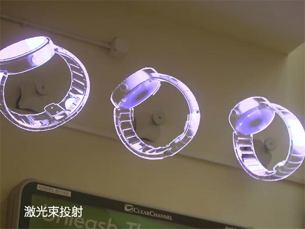 激光束投射:依靠在空氣中不斷進行小型爆破,氮氣和氧氣在空氣中散開時,混合成的氣體變成灼熱的漿狀物質(zhì),并在空氣中形成一個短暫的 3D 圖像,缺點是只有白色,且顯示時間很短。